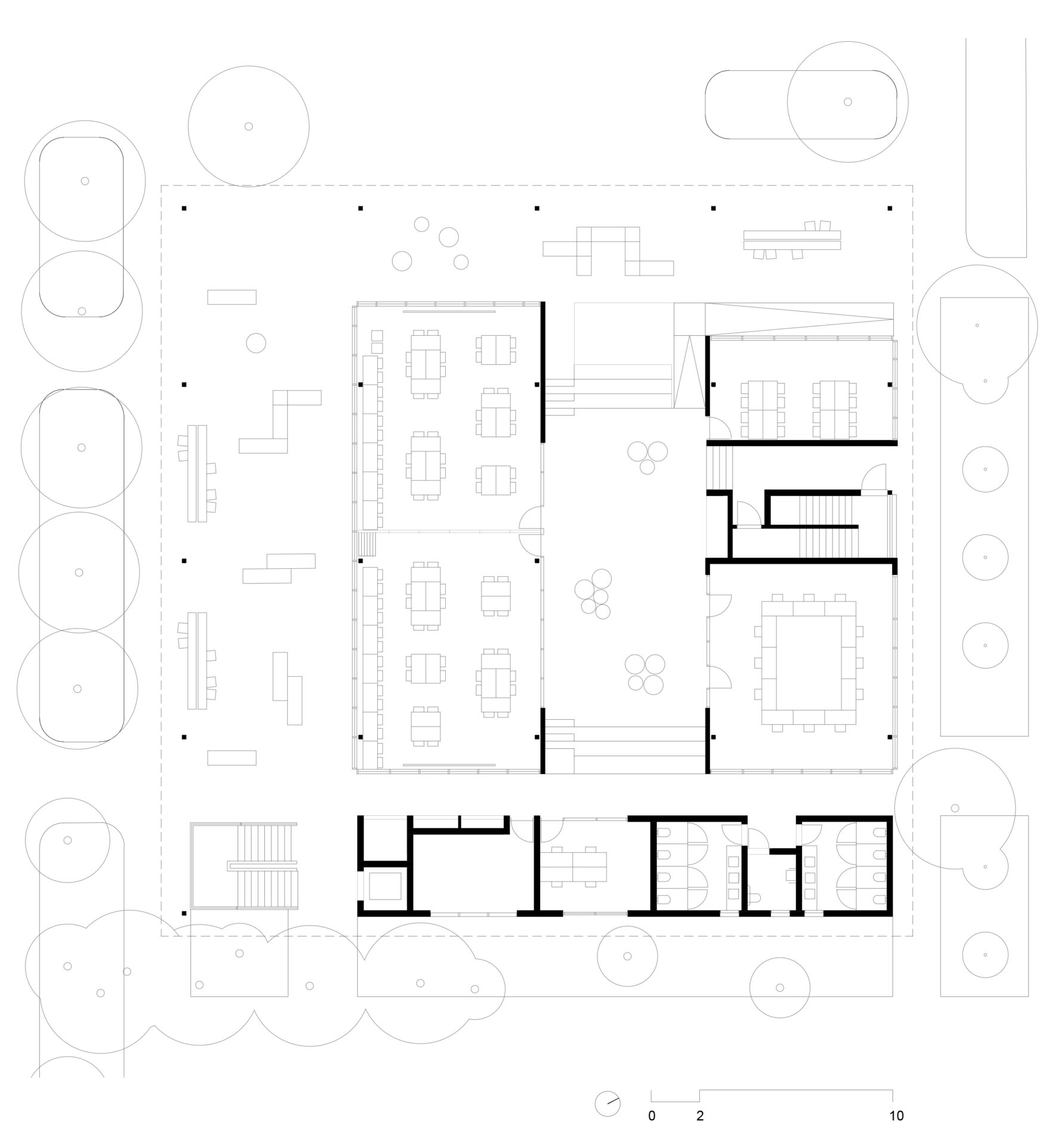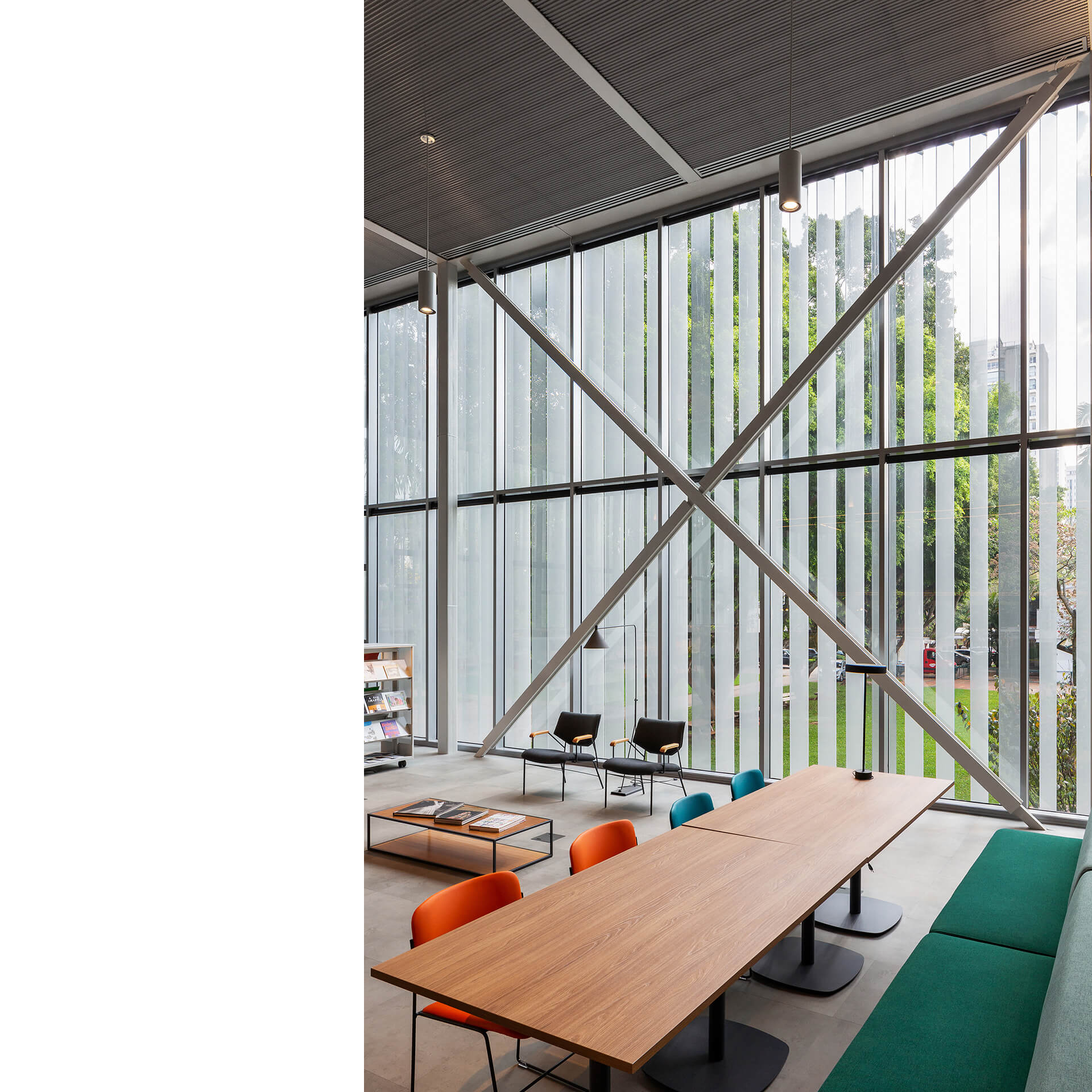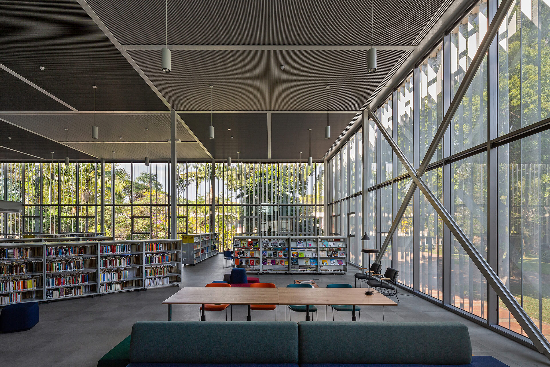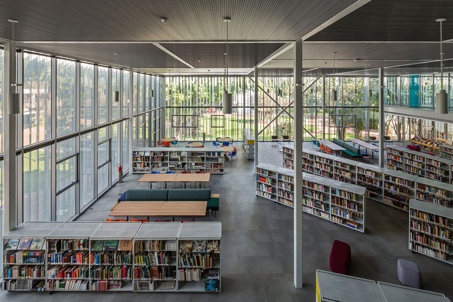 O concurso para o projeto da nova biblioteca do Colégio Santa Cruz, um dos importantes colégios tradicionais da cidade de São Paulo, surgiu ao longo do processo de modernização e reestruturação do campus, com o intuito de integrar as áreas livres. Por sua implantação privilegiada, no centro do campus, o projeto original da biblioteca não correspondia com sua importância, dado que não possuía uma relação direta com seu entorno. A proposta para a nova biblioteca do colégio Santa Cruz parte de uma abordagem que privilegia a visão do todo, ou seja: o conjunto dos edifícios e dos espaços livres do Campus. Esta visão nos conduz à concepção de uma intervenção que visa contribuir para o ambiente, antes de valorizar a performance do edifício como objeto isolado.Além das condições físicas do campus, a visita ao local nos permitiu reconhecer algumas dinâmicas importantes, tais como o uso dos espaços livres como lugar de estar e de socialização em pequenos grupos, ou o afluxo de alunos do ensino médio, por um acesso e dos alunos do ensino fundamental, por outro acesso.A compreensão dessas dinâmicas acabou sendo determinante na reorganização da distribuição do programa proposto por nós. Podemos destacar, particularmente o desejo de reforçar o térreo da biblioteca como espaço livre para a fruição e para a socialização, potencializando-o como um lugar de encontro qualificado.