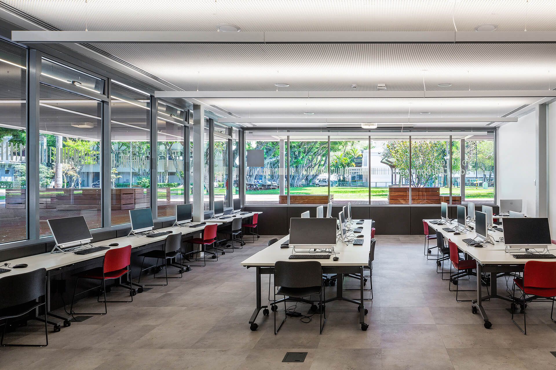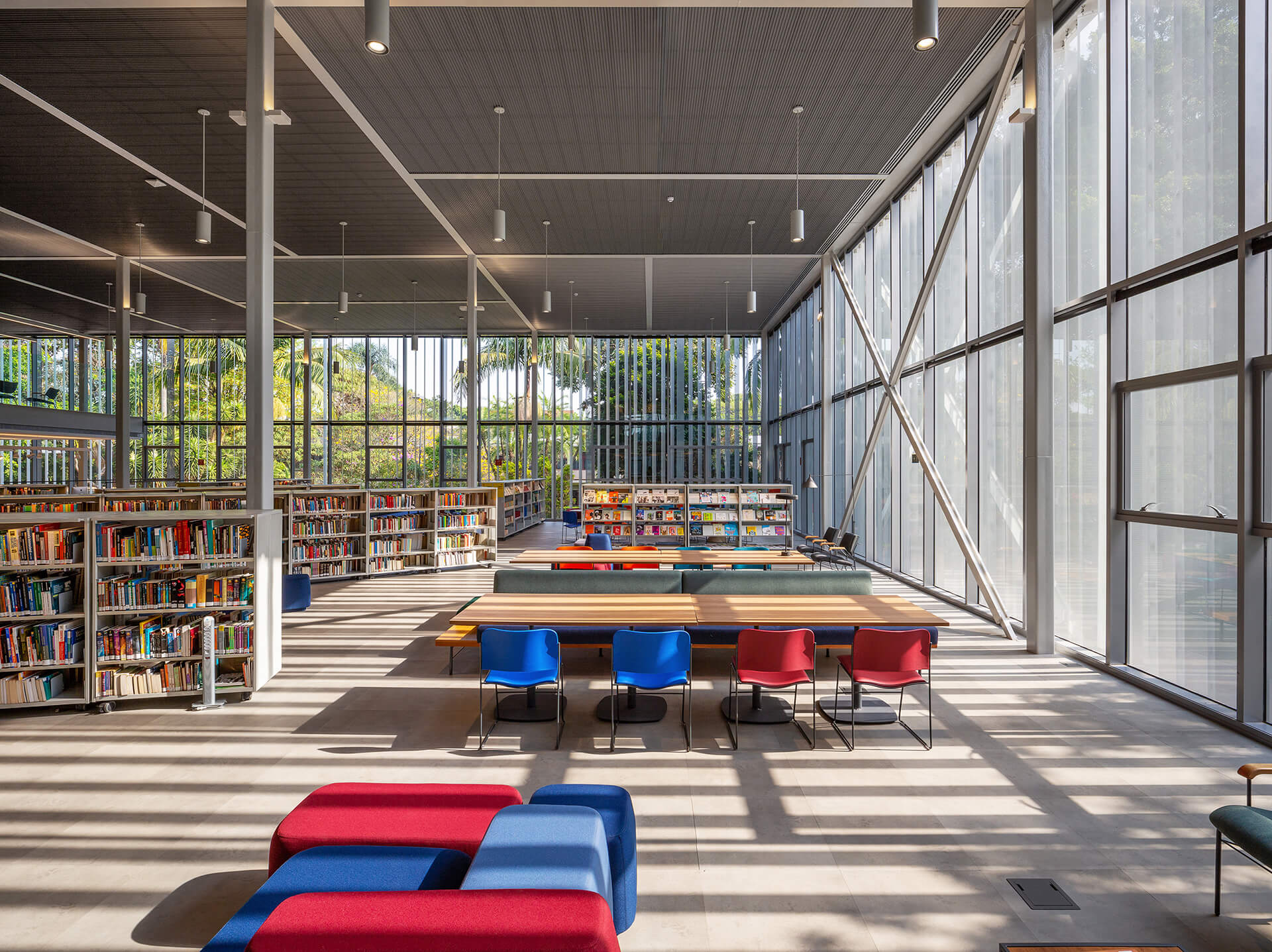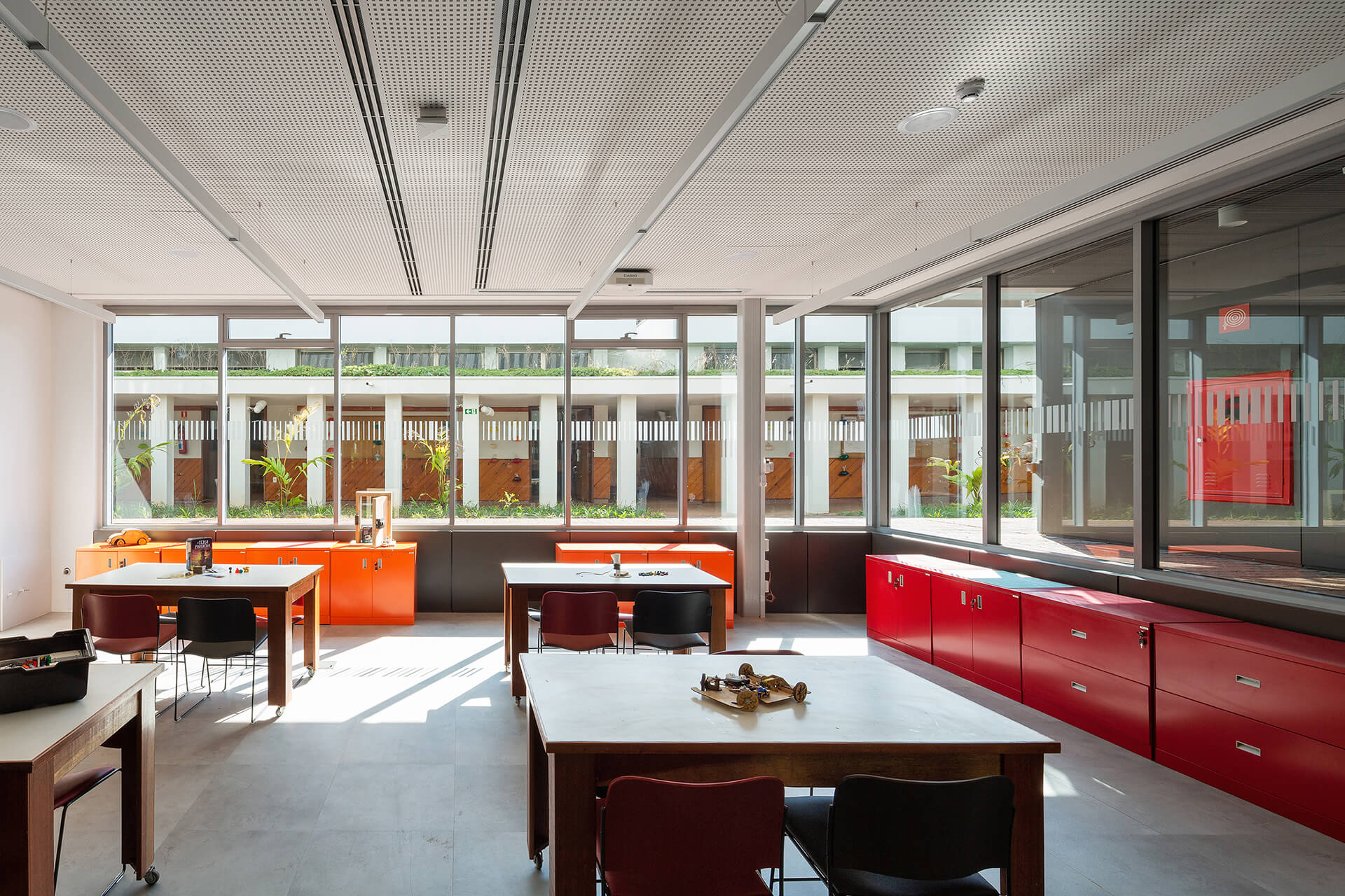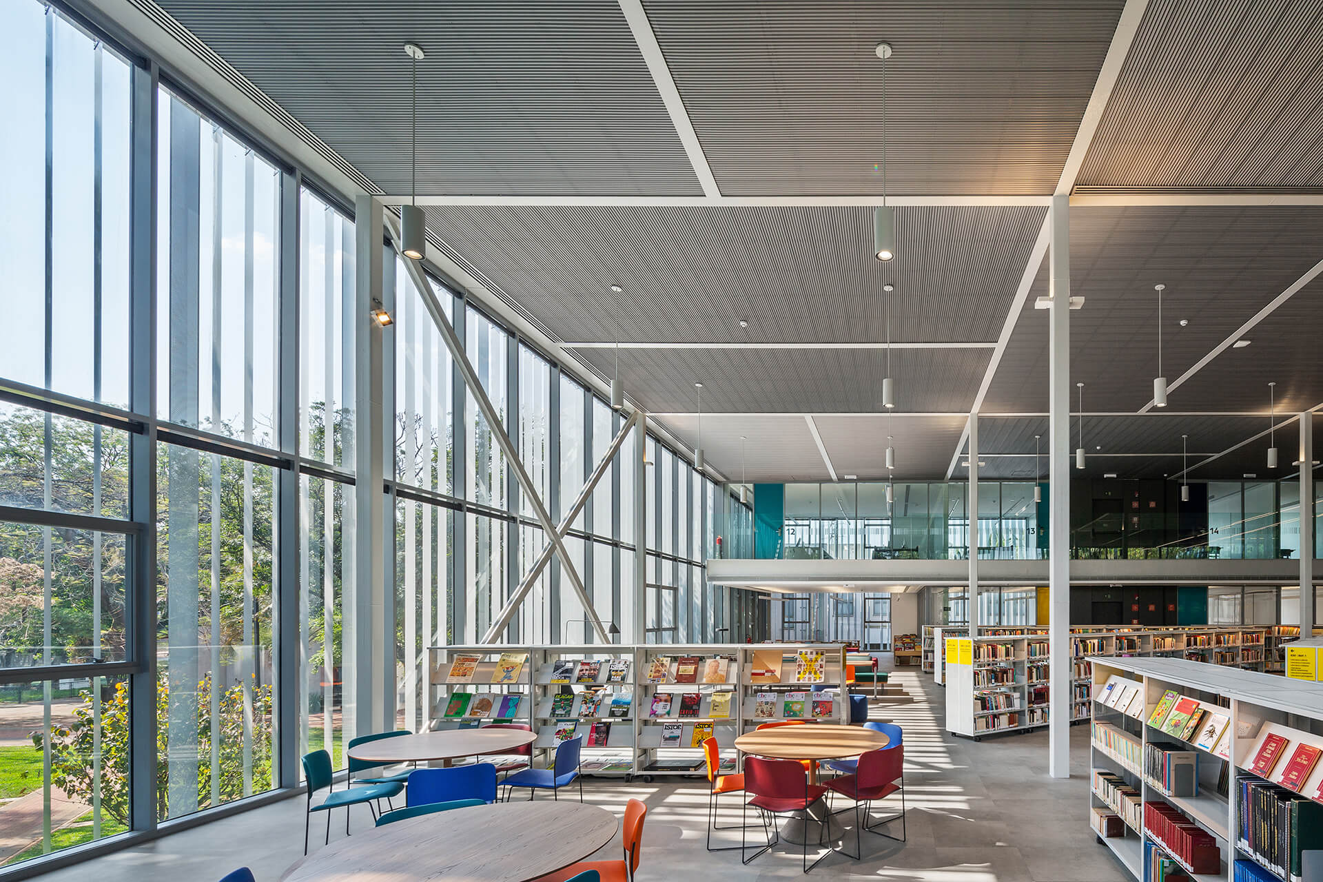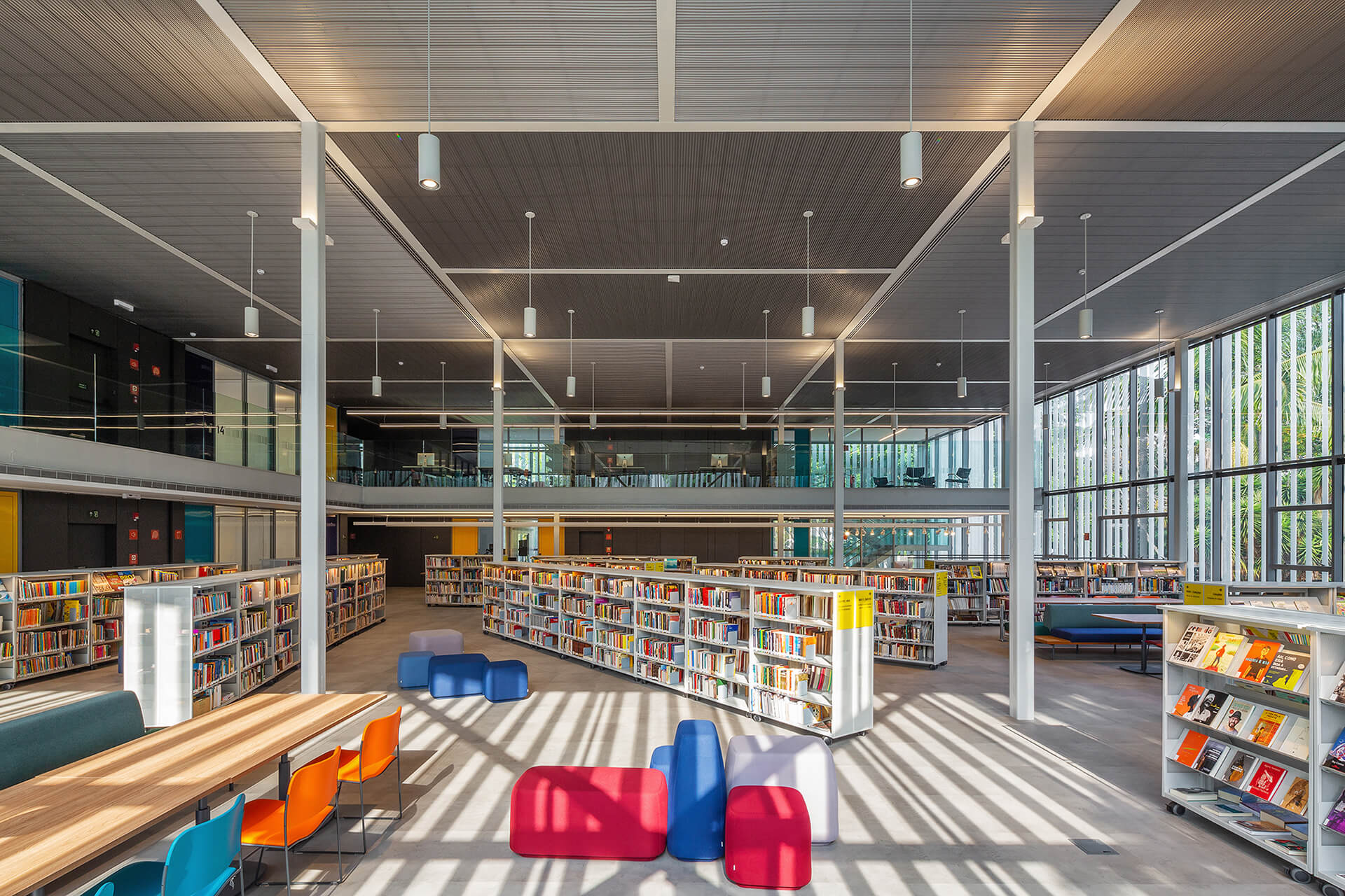 O concurso para o projeto da nova biblioteca do Colégio Santa Cruz, um dos importantes colégios tradicionais da cidade de São Paulo, surgiu ao longo do processo de modernização e reestruturação do campus, com o intuito de integrar as áreas livres. Por sua implantação privilegiada, no centro do campus, o projeto original da biblioteca não correspondia com sua importância, dado que não possuía uma relação direta com seu entorno. A proposta para a nova biblioteca do colégio Santa Cruz parte de uma abordagem que privilegia a visão do todo, ou seja: o conjunto dos edifícios e dos espaços livres do Campus. Esta visão nos conduz à concepção de uma intervenção que visa contribuir para o ambiente, antes de valorizar a performance do edifício como objeto isolado.Além das condições físicas do campus, a visita ao local nos permitiu reconhecer algumas dinâmicas importantes, tais como o uso dos espaços livres como lugar de estar e de socialização em pequenos grupos, ou o afluxo de alunos do ensino médio, por um acesso e dos alunos do ensino fundamental, por outro acesso.A compreensão dessas dinâmicas acabou sendo determinante na reorganização da distribuição do programa proposto por nós. Podemos destacar, particularmente o desejo de reforçar o térreo da biblioteca como espaço livre para a fruição e para a socialização, potencializando-o como um lugar de encontro qualificado.