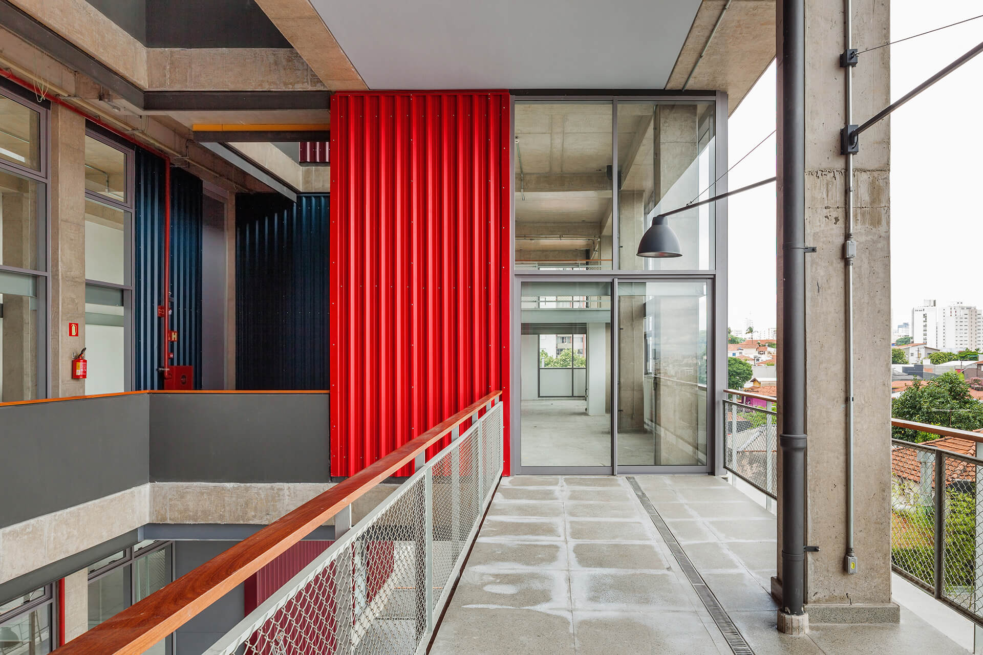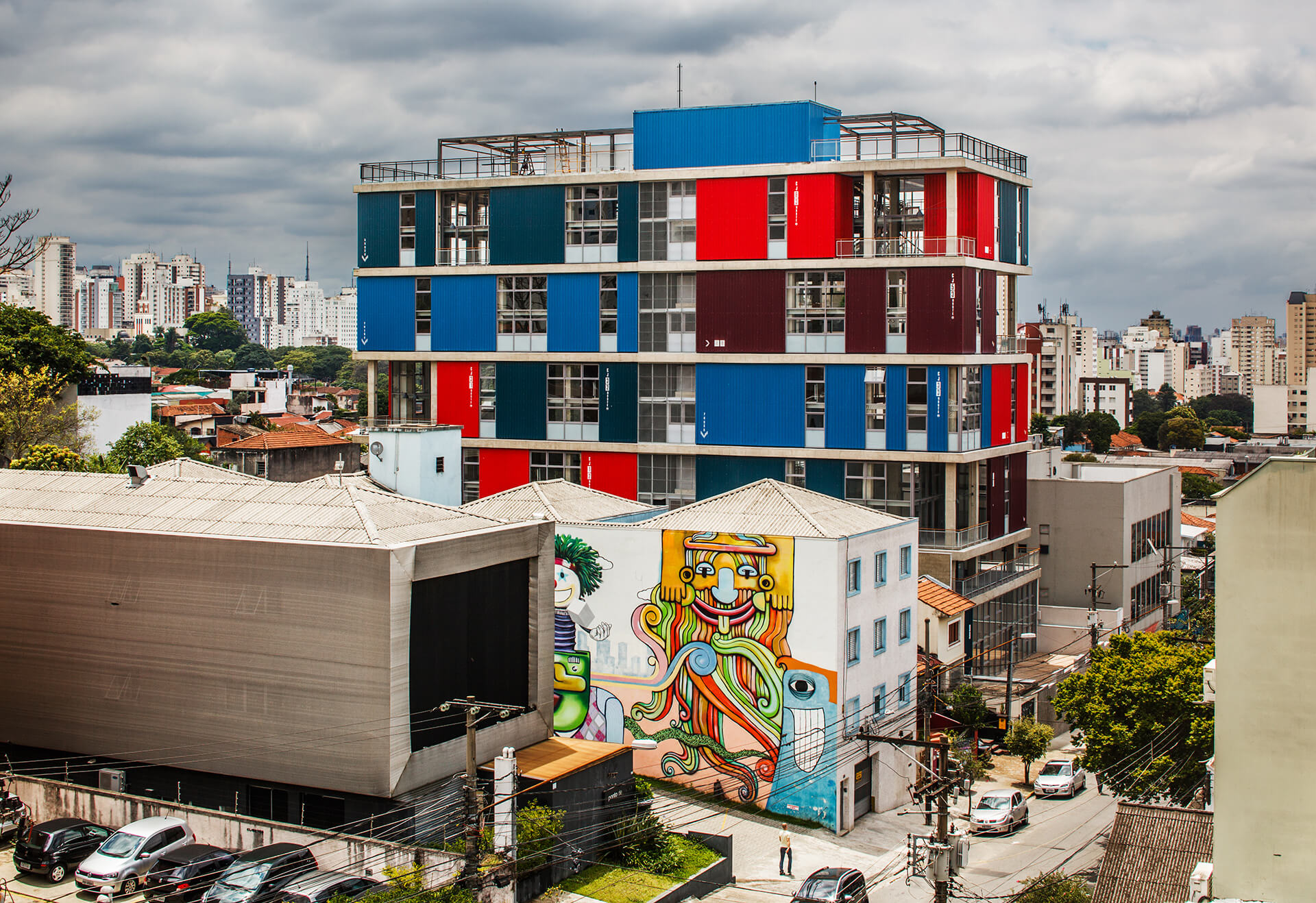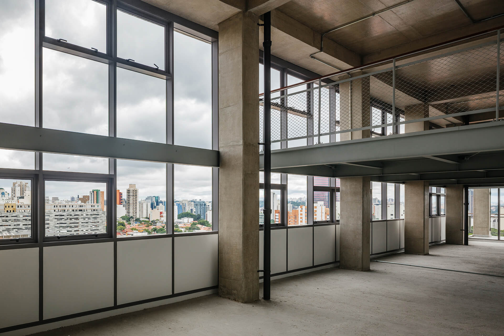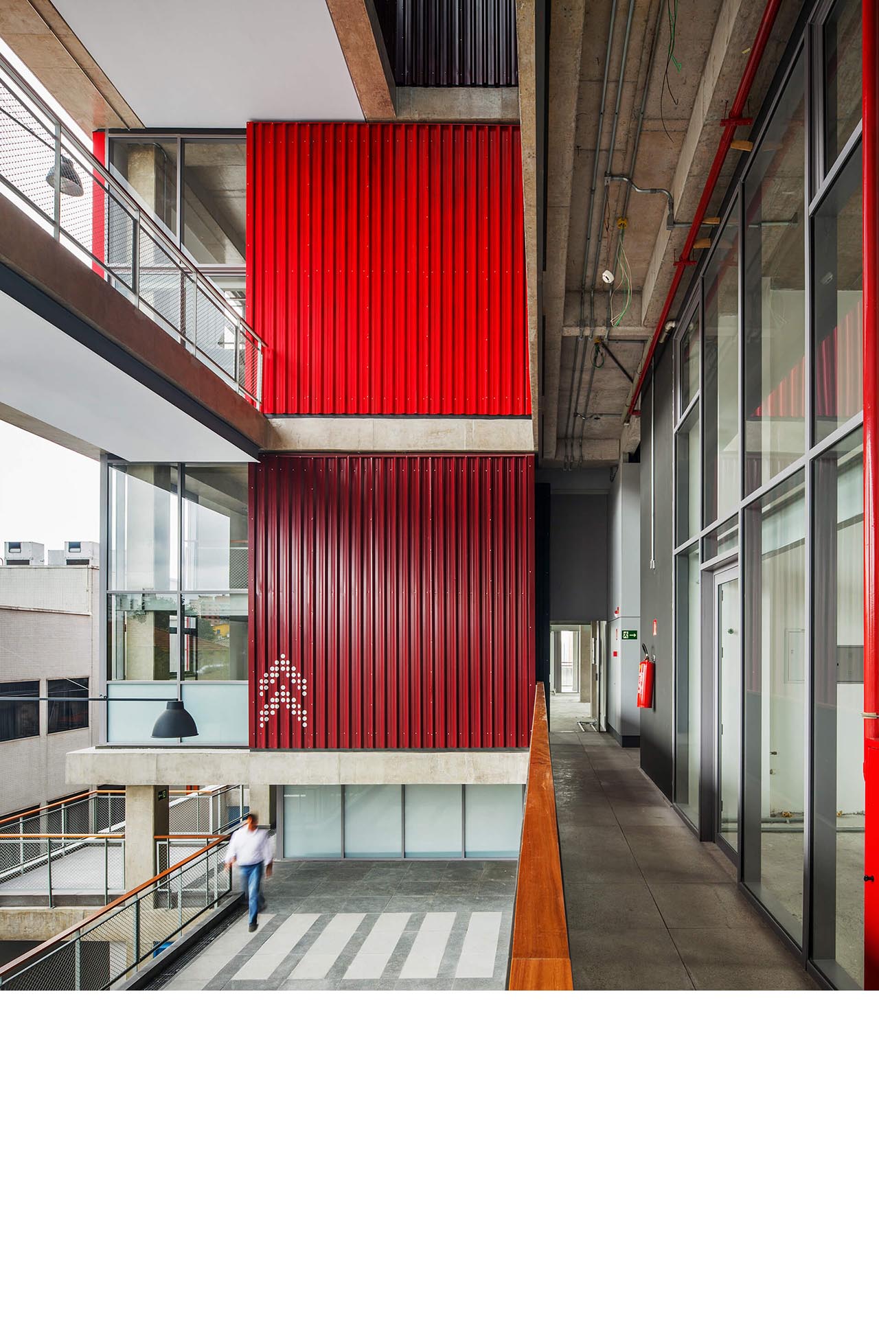 A implantação do edifício no lote explora a possibilidade de conexão entre as ruas Wisard e Fidalga. Esta conexão valoriza a percepção espacial e visual do lugar. Desta forma cria-se um percurso contínuo que se inicia no passeio público e conduz a um generoso hall aberto que conta com pé direito triplo e com as visuais livres. A construção da lamina superior expressa o conceito de um edifício flexível, através da sobreposição de lajes com pé direito duplo e fechamentos leves posicionados demaneira alternada, proporcionando espaços diversificados e também grande liberdade para a ocupação de seus espaços internos.