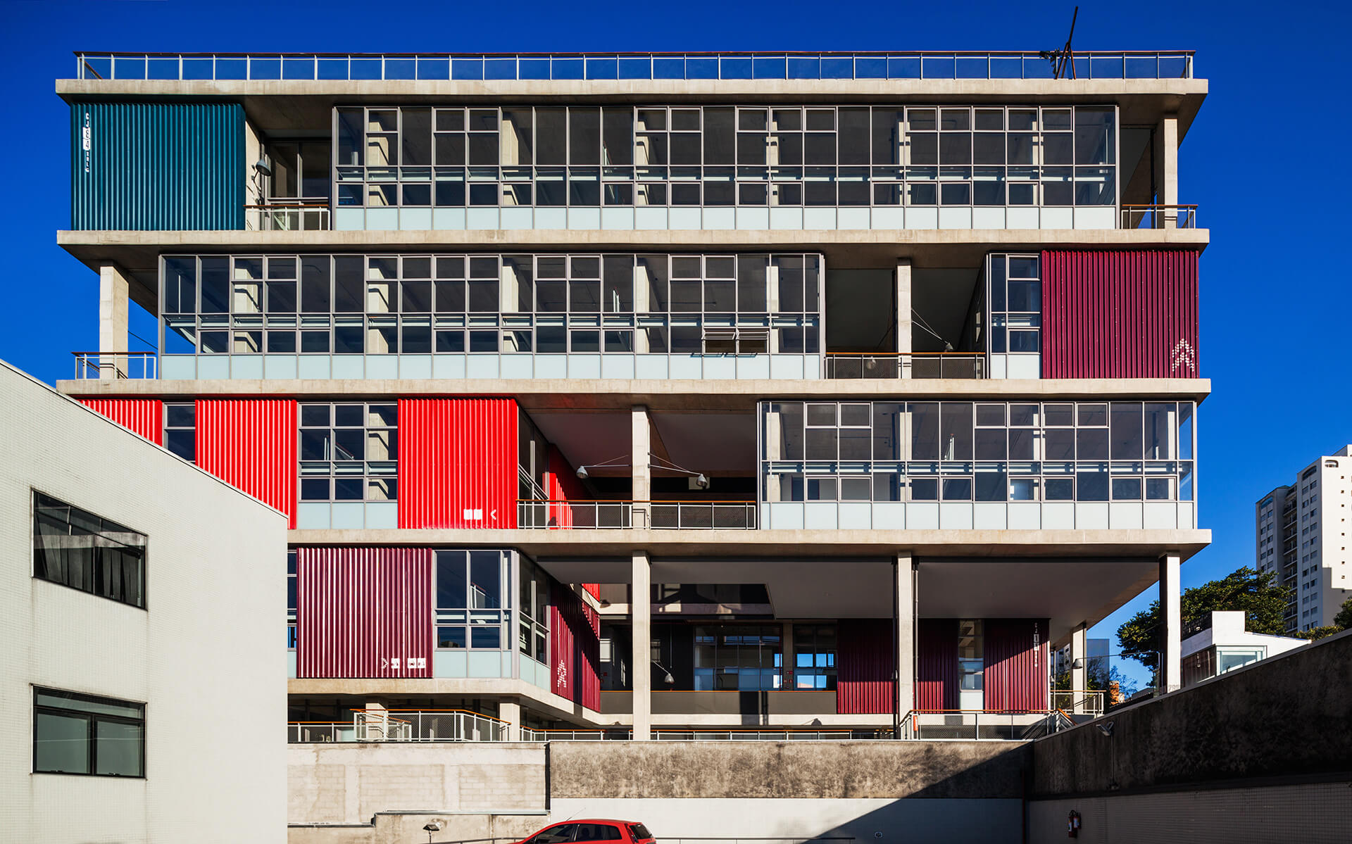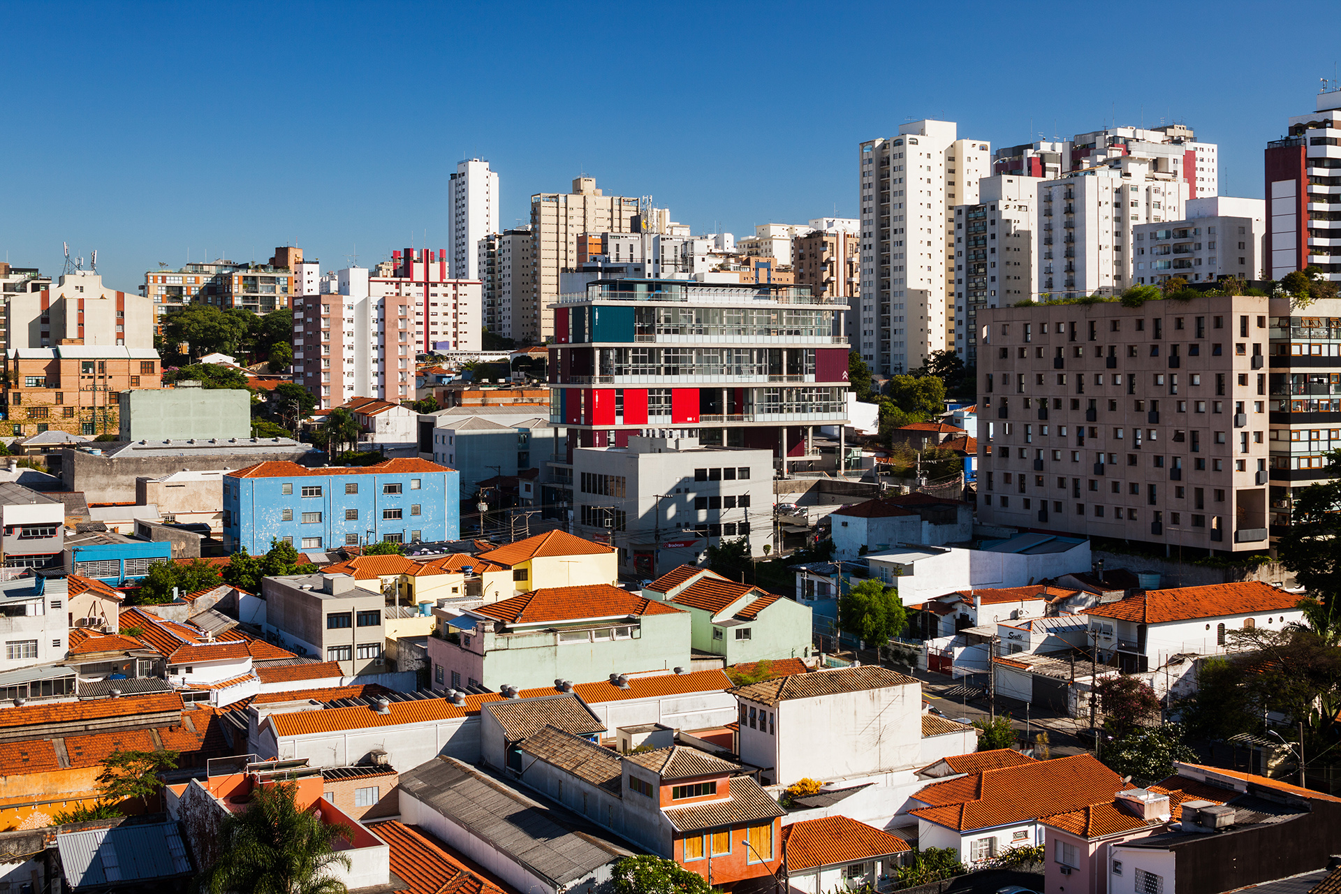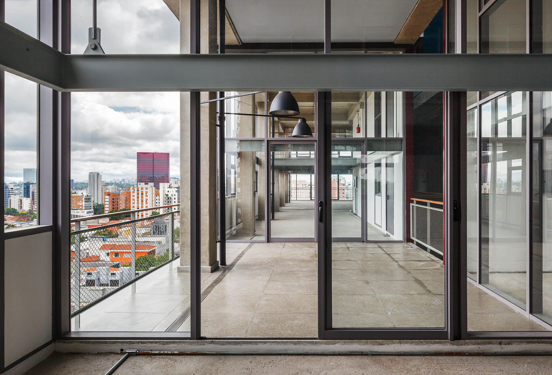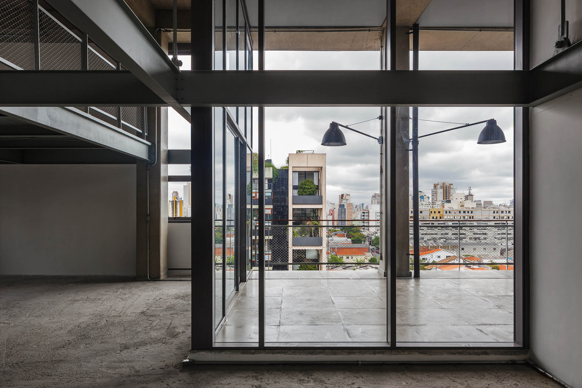 A implantação do edifício no lote explora a possibilidade de conexão entre as ruas Wisard e Fidalga. Esta conexão valoriza a percepção espacial e visual do lugar. Desta forma cria-se um percurso contínuo que se inicia no passeio público e conduz a um generoso hall aberto que conta com pé direito triplo e com as visuais livres. A construção da lamina superior expressa o conceito de um edifício flexível, através da sobreposição de lajes com pé direito duplo e fechamentos leves posicionados demaneira alternada, proporcionando espaços diversificados e também grande liberdade para a ocupação de seus espaços internos.