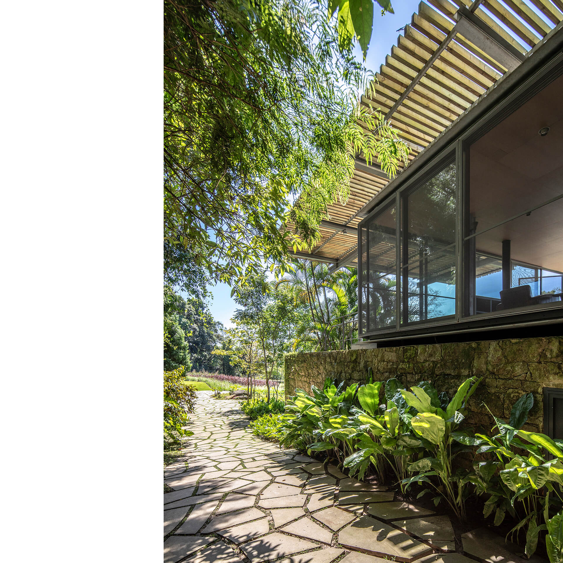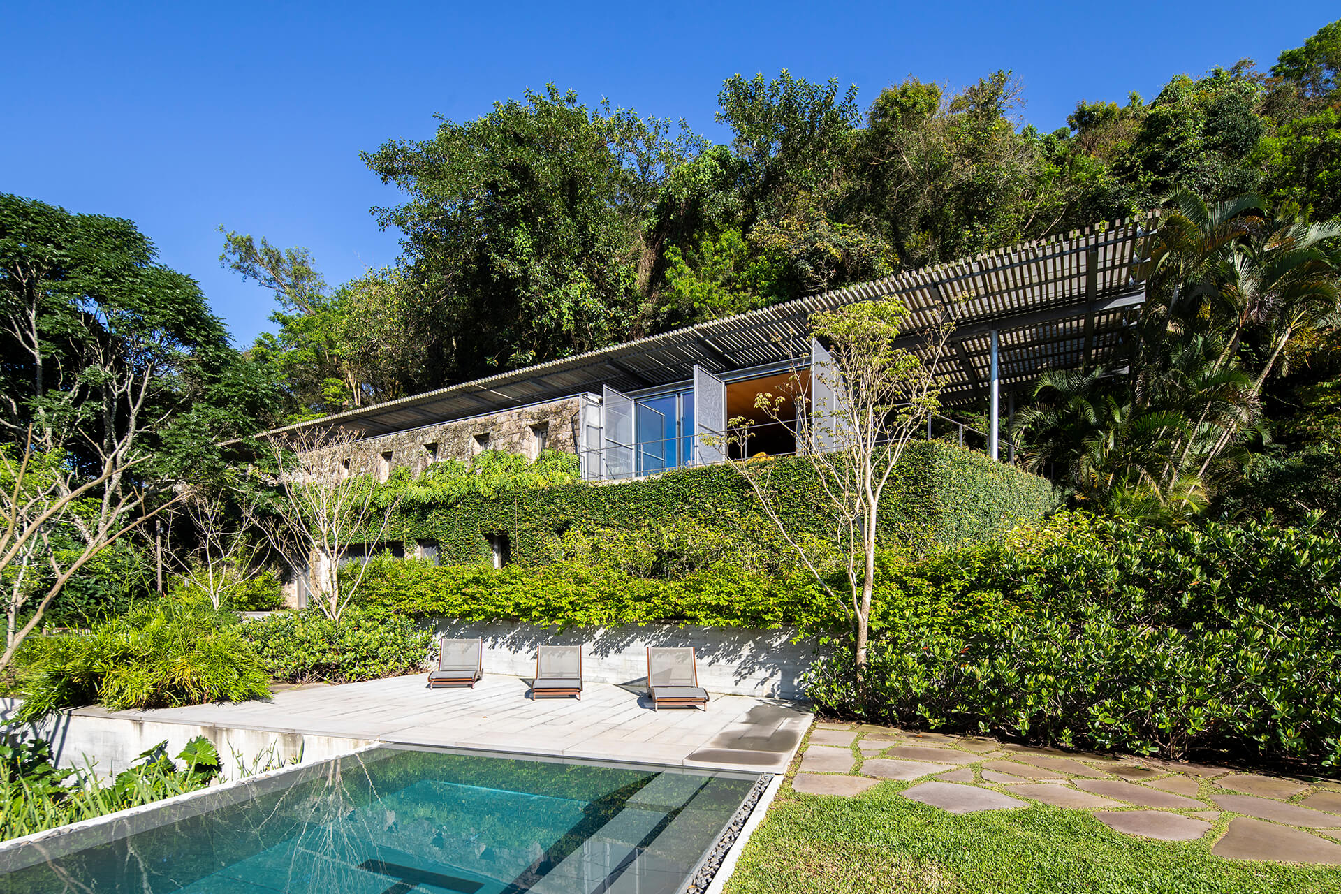 Esta casa para hóspedes situa-se em uma charmosa propriedade inserida em meio à Mata Atlântica, na Barra da Tijuca, Rio de Janeiro. A presença desta mata exuberante e belas visuais determinam a atmosfera do lugar.