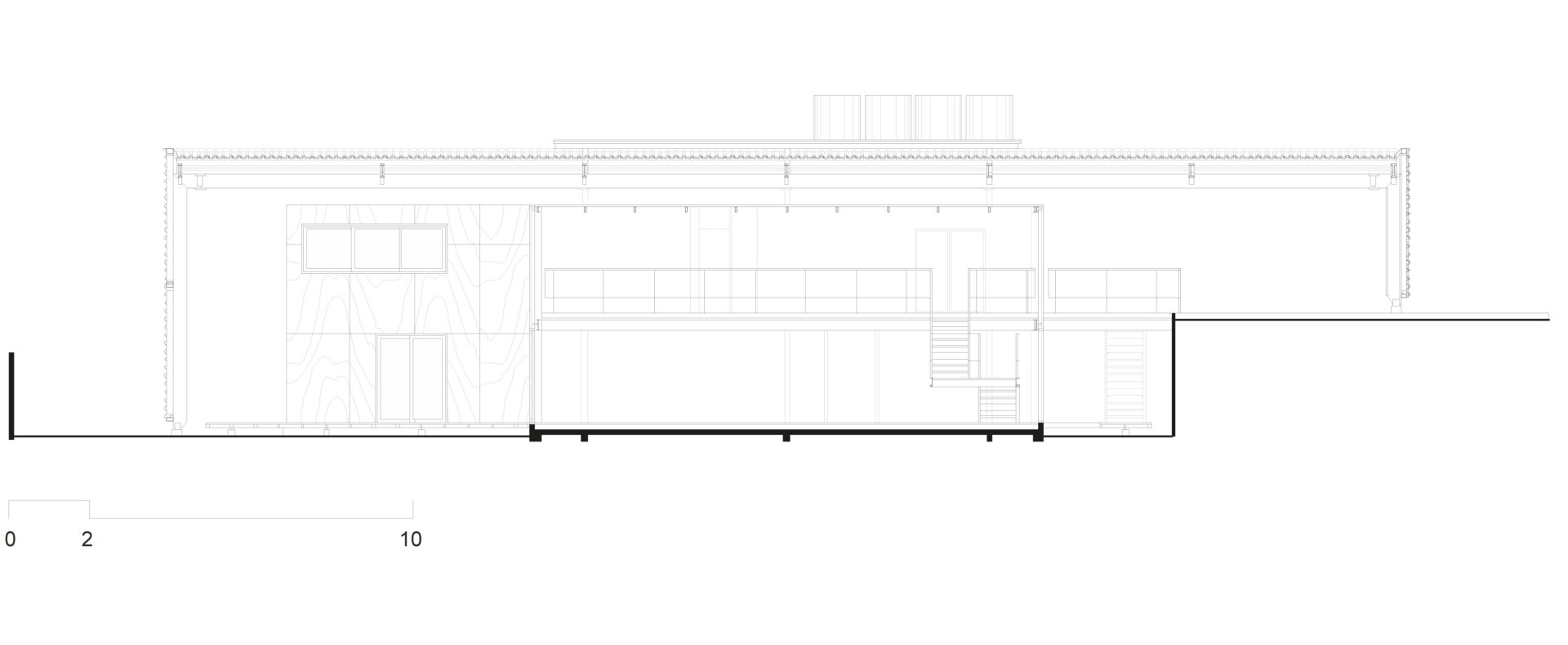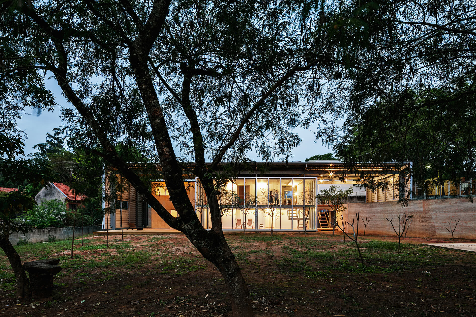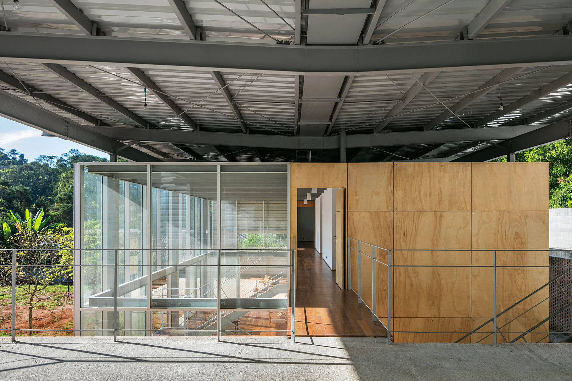 O fechamento externo do volume, por sua vez, acabou se transformando na grande questão do projeto, uma vez que deveria proporcionar toda a integração desejada e, ao mesmo tempo, funcionar como mediador com a mata.