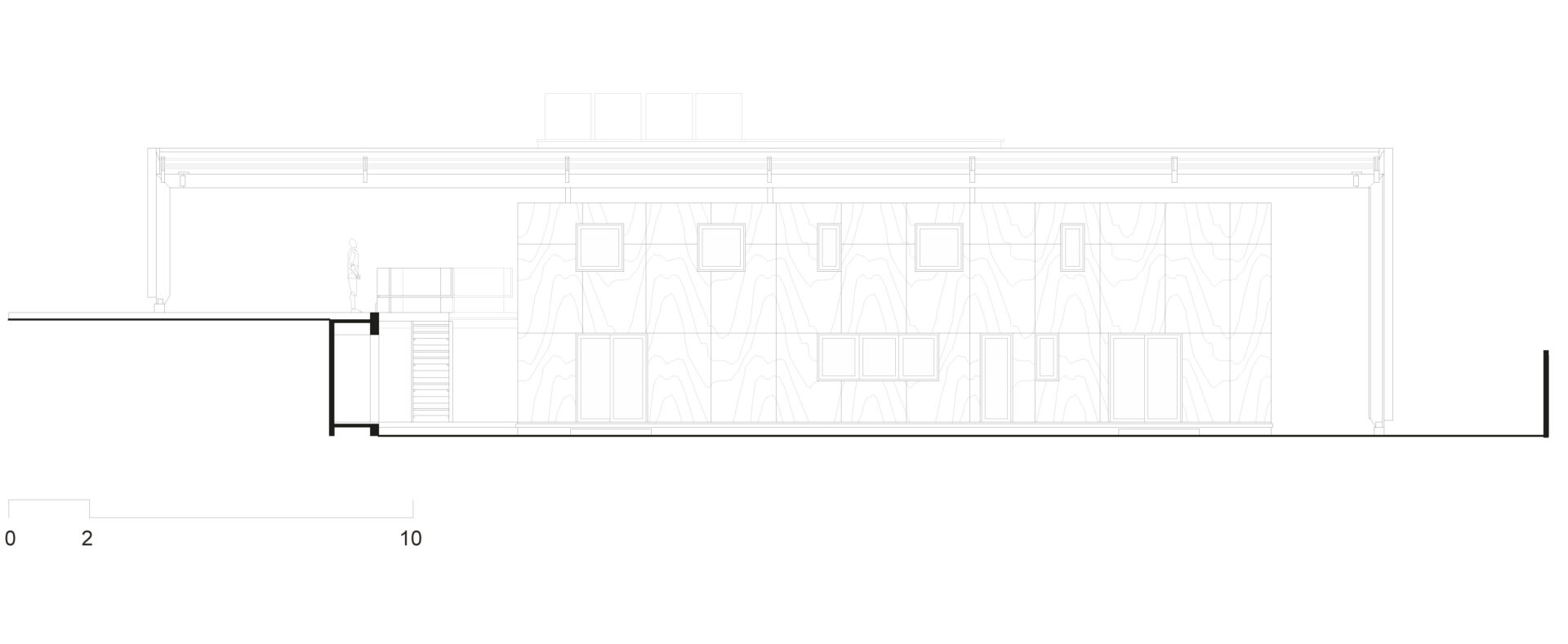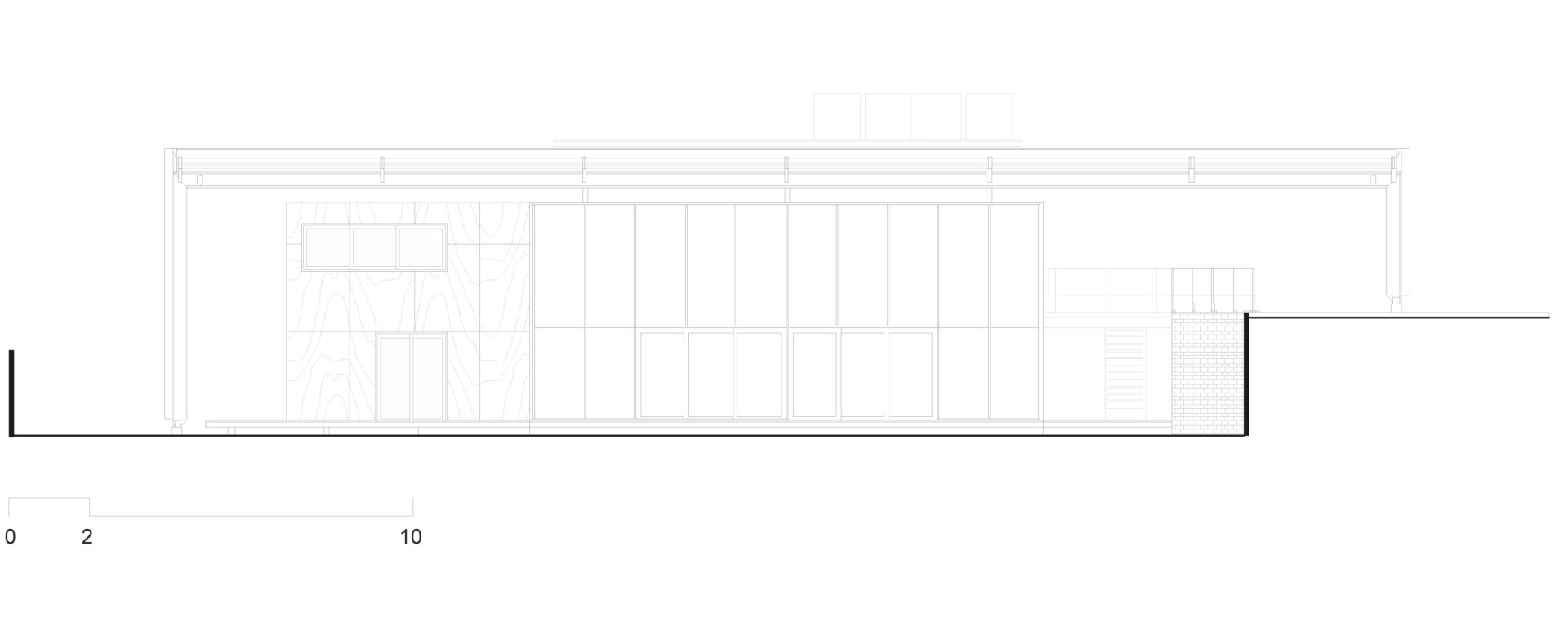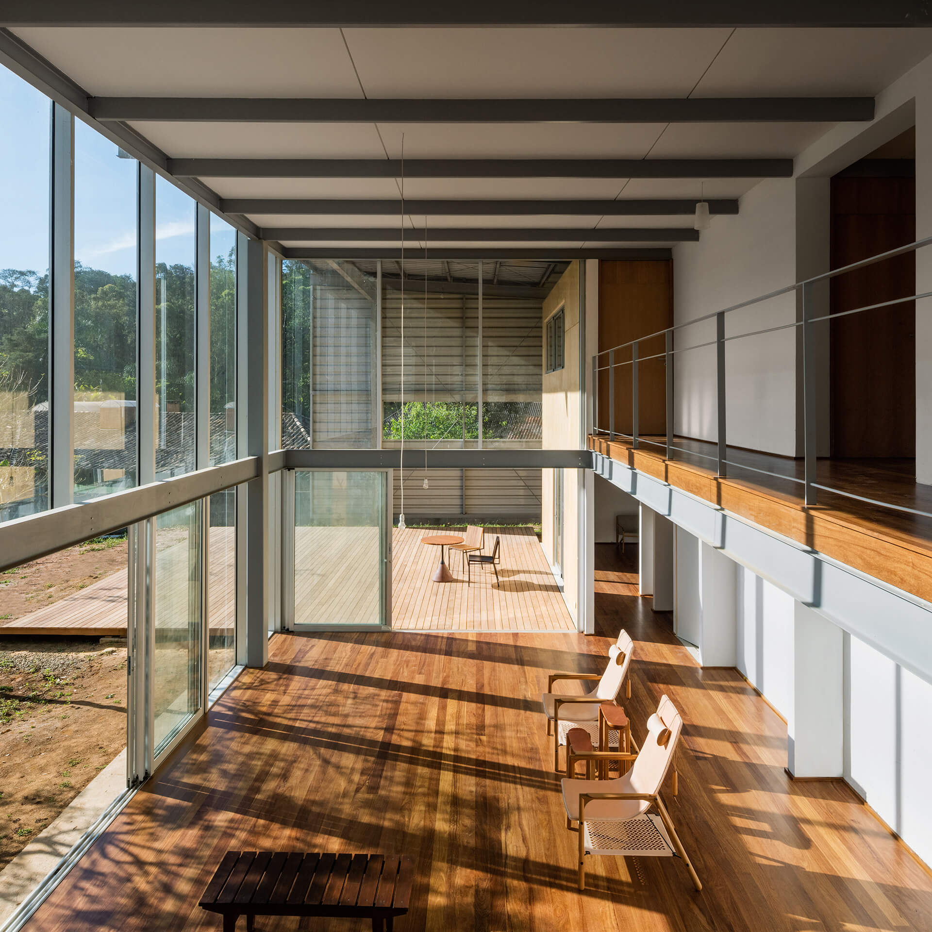 O fechamento externo do volume, por sua vez, acabou se transformando na grande questão do projeto, uma vez que deveria proporcionar toda a integração desejada e, ao mesmo tempo, funcionar como mediador com a mata.