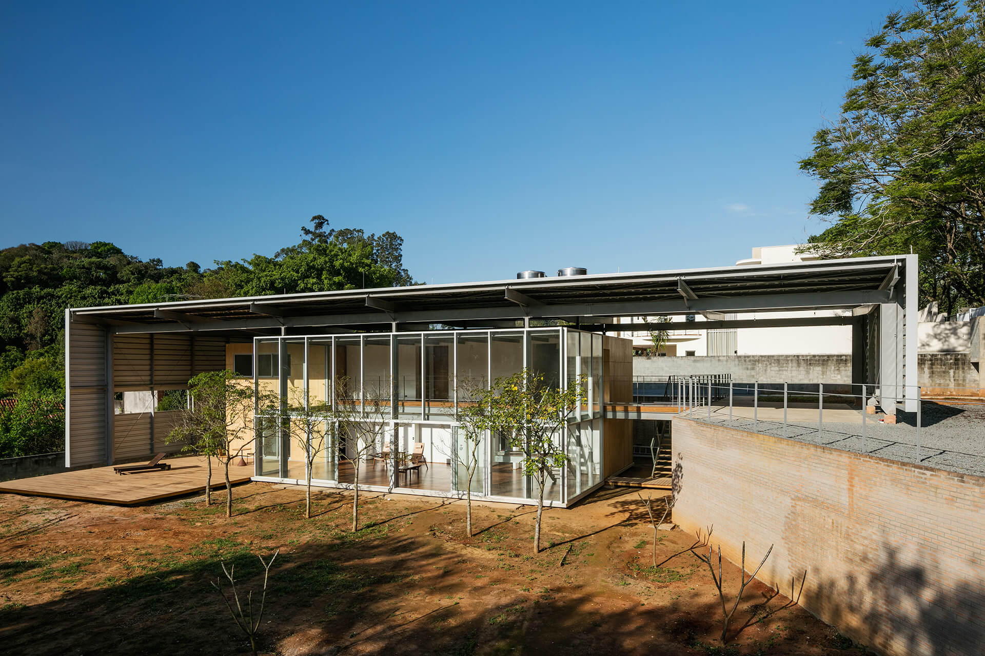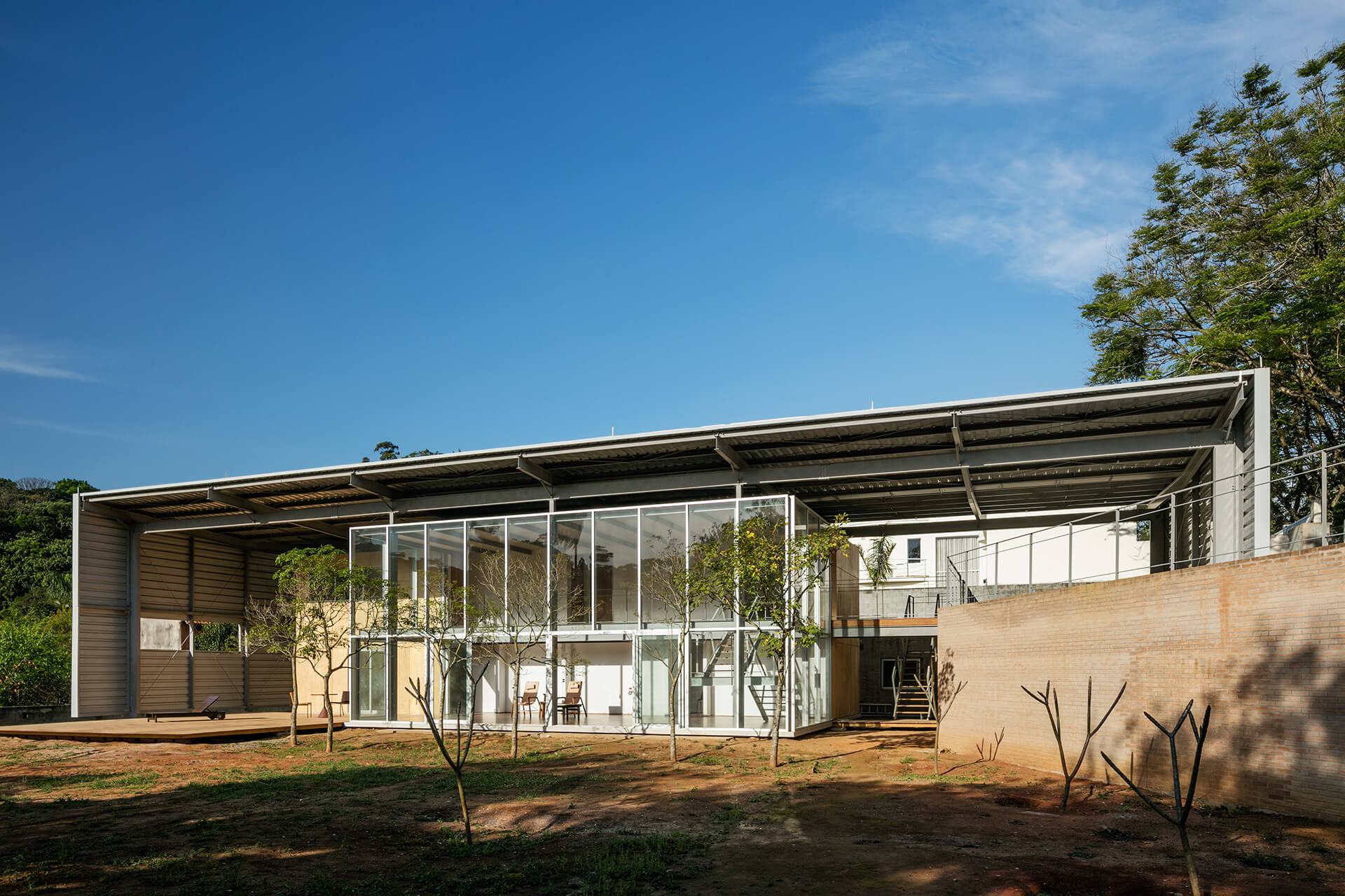Este projeto localiza-se nos arredores da área metropolitana de São Paulo, num terreno de 2.568 m² densamente arborizado, e foi uma oportunidade de pensar a casa como um abrigo para o homem em meio à natureza.
