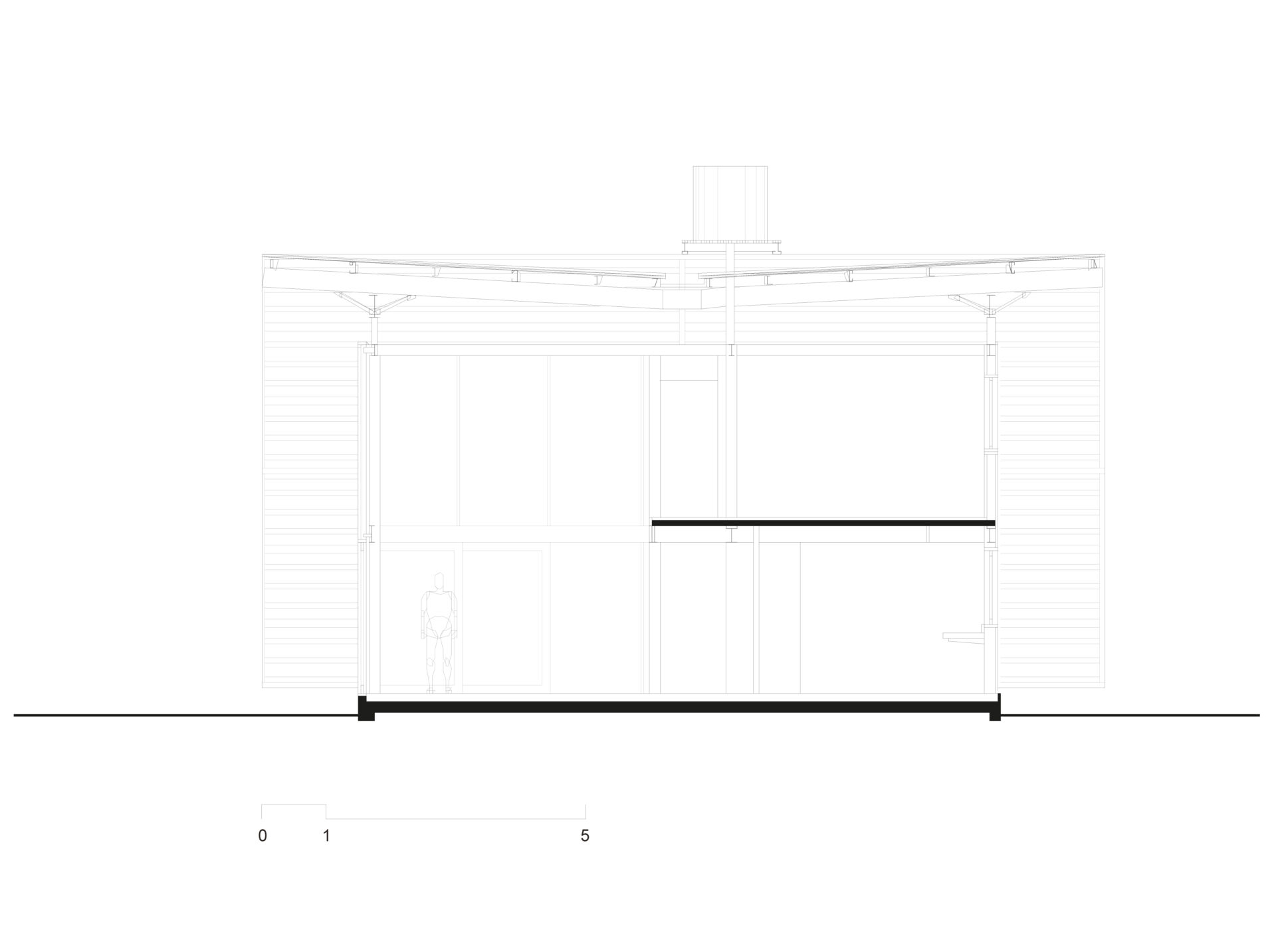 A construção desse abrigo, como se vê, pressupõe a utilização de componentes industrializados, que permitem uma montagem rápida e precisa. Além dessa espécie de depuração construtiva, nosso desejo foi criar um volume cuja materialidade — dada especialmente pela pele dupla — permitisse diferentes leituras da inserção da casa na natureza, em função das suas características tanto miméticas quanto de reação às variações climáticas. Assim, dependendo da luz incidente e da posição relativa do observador, da casa e da mata, teríamos a arquitetura se afirmando ora como uma caixa de luz, ora como objeto opaco, ora como volume translúcido, ora como um camaleão engolido pela natureza.